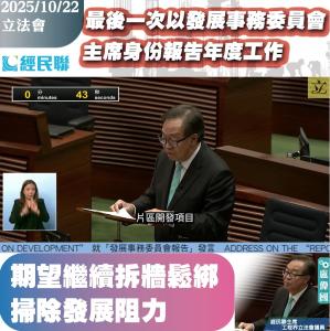 【最後一次以發展事務委員會主席身份報告年度工作 期望繼續拆牆鬆綁 掃除發展阻力】