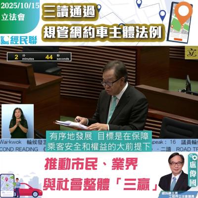 【三讀通過規管網約車主體法例 推動市民、業界與社會整體「三贏」】